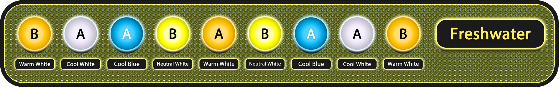 • UV/Blue Hybrid: A mix of royal blue, near-UV, Violet, and Indigo to enhance coral coloration and stimulate growth.