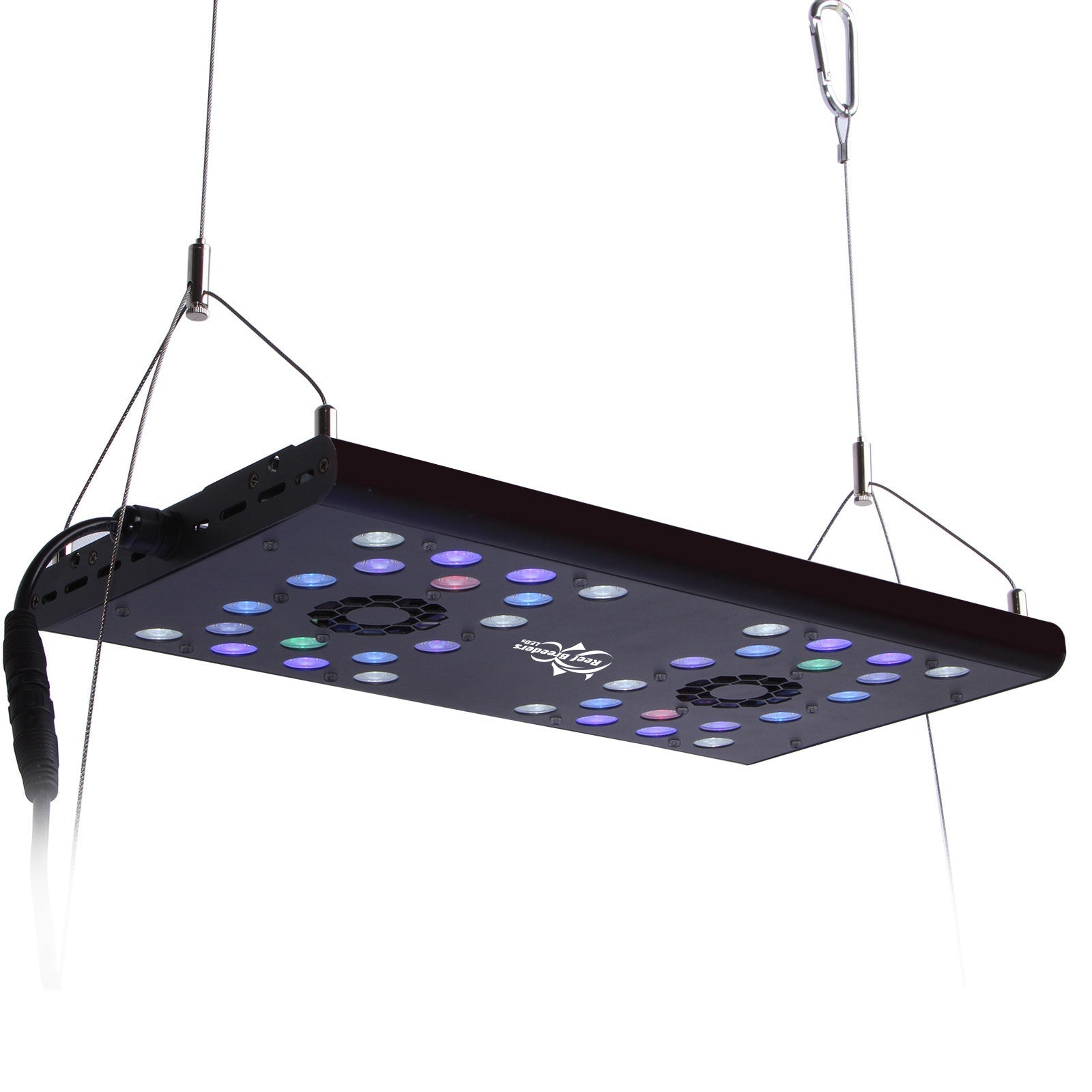 Each light is constructed of a slim, 100% extruded aluminum heat sink which is robust and built to last, unlike the plastic cases used by most competitors. Each light includes either adjustable tank mounting legs or a wire hanging set. You can also upgrade to the back of tank mounts. The T track on top of the light includes 4 m6 bolts with the option to add more bolts for almost limitless mounting configurations. We include everything you need to hang/mount your light- no extra hardware required for most tanks.